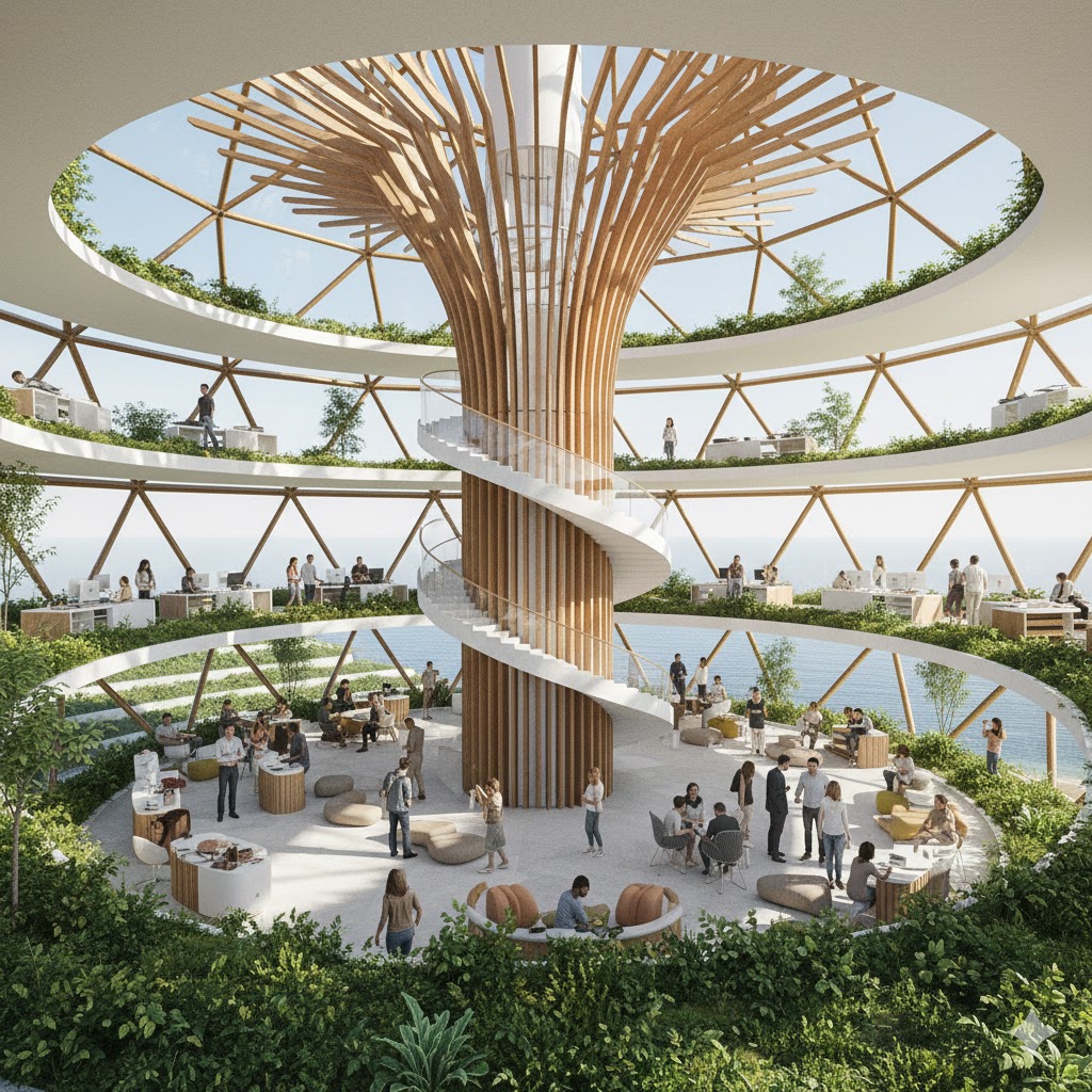 | Zentraler Kern | Baumartige Struktur | Das gestalterische und technische Rückgrat. Bündelt vertikale Erschließung (Aufzüge/Treppen) und die Gebäudetechnik. |