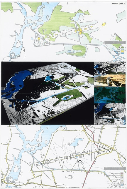 Verbunden werden diese drei Schwerpunkte durch Wohngebiete, die auf unterschiedliche Weise mit der Natur in Beziehung stehen. Der übergeordnete Grünzug kann somit den Balken durchfließen.